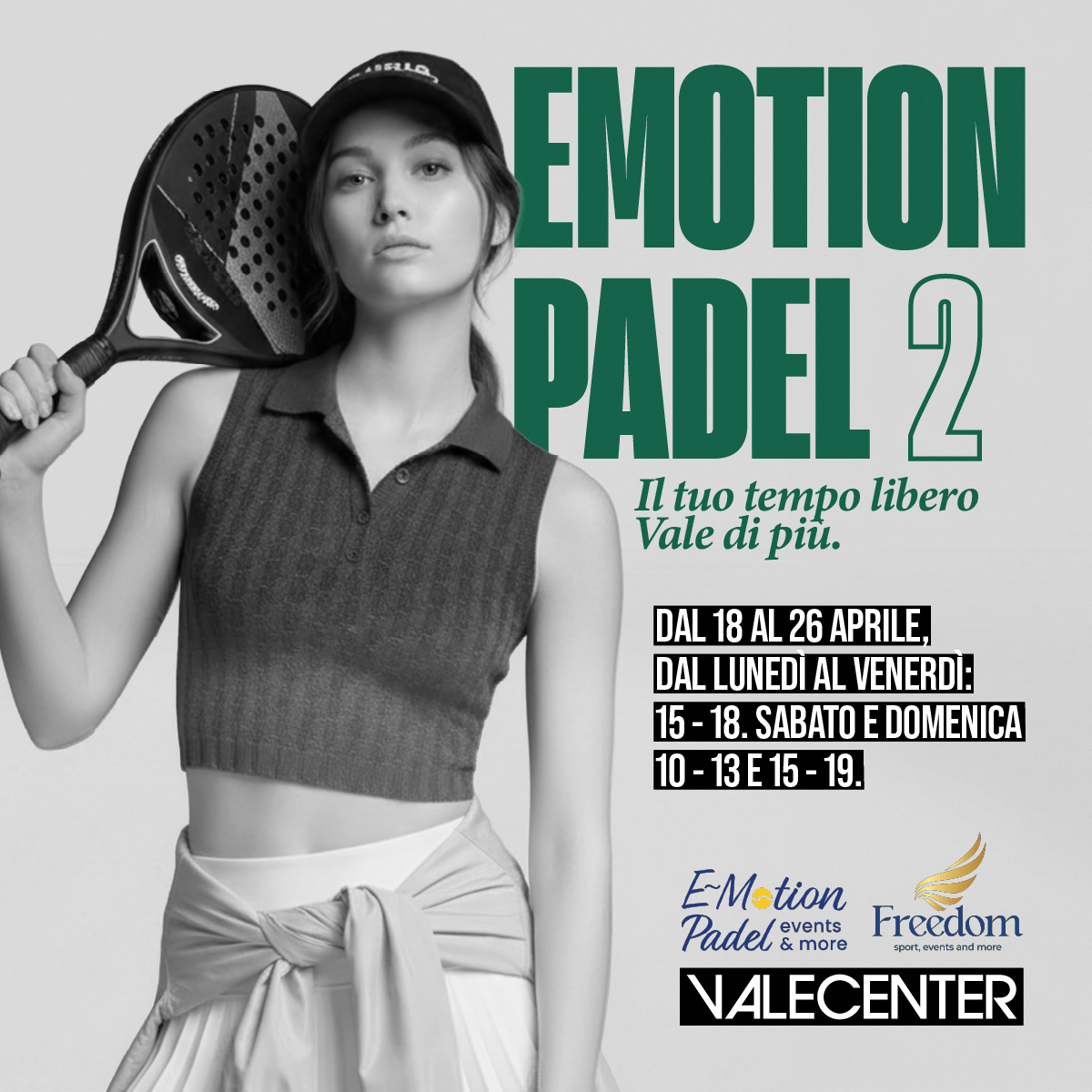 Dal 18 al 26 aprile il padel arriva al CC Valecenter con Emotion Padel 2!🎾Un evento dedicato a sport e divertimento, con attività aperte a tutti: dagli appassionati a chi vuole provare per la prima volta.💥