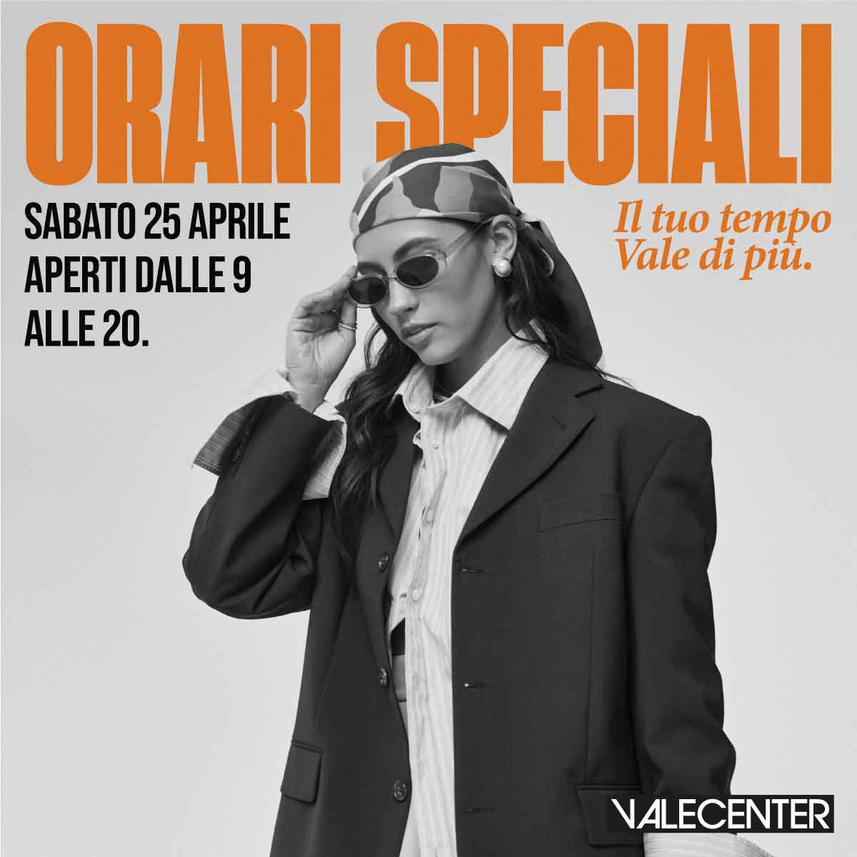 Vi comunichiamo gli ORARI SPECIALI di Valecenter per sabato 25 aprile.