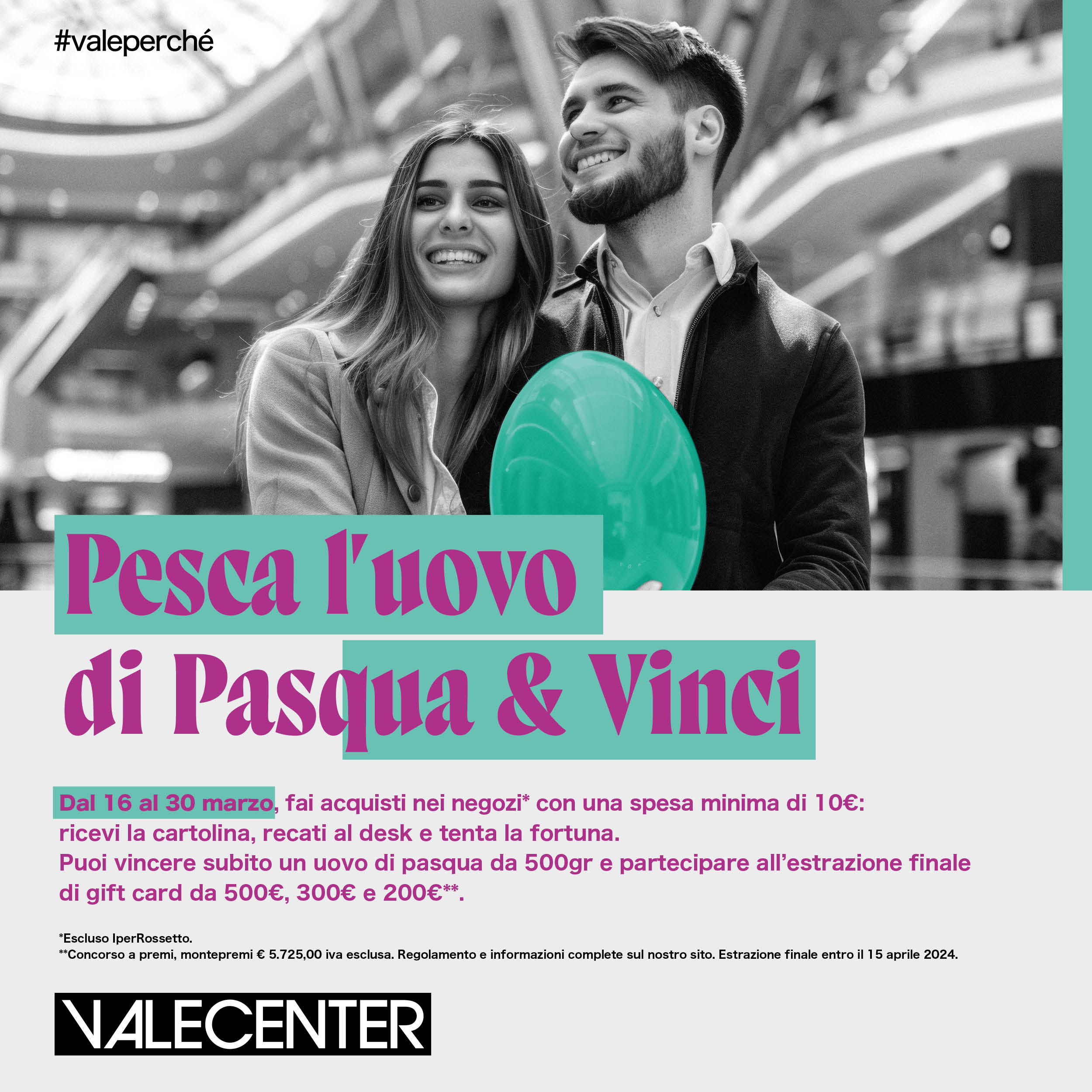 con una spesa minima di 10€ ricevi una cartolina, recati al desk e tenta la fortuna! 🍀 Avrai l’opportunità di vincere immediatamente un delizioso uovo di Pasqua da 500gr e partecipare all’estrazione finale per aggiudicarti le gift card del centro! 🏆